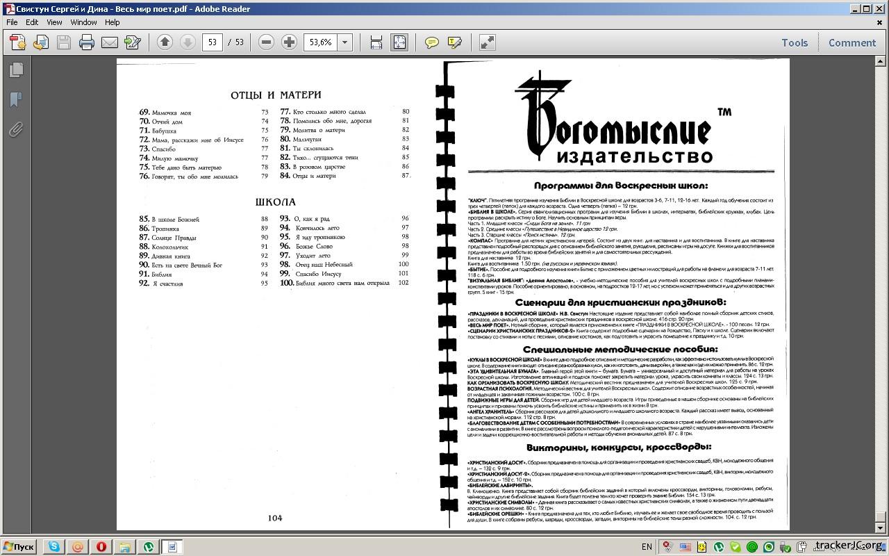 Название: Весь мир поет Автор: Сергей Свистун, Дина Свистун Издательство: Одесса, Богомыслие Год: 2001 Страниц: 53 Формат: pdf Качество: Отличное (сканированые страницы) Язык: русский