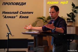 Николай Скопич, основатель и пастор церкви «Алмаз» в г.Киеве. Родился в 1973 г, помирился с Богом в 1991г. Окончил Национальный Технический Университет, украинскую техническую семинарию и центр подготовки пасторов. Имеет жену и двоих детишек. Бог использовал его как проповедника на конференциях «Свет на Востоке», «Украина для Христа», «Сообщество Студентов Христиан», «Христианские Международные Лагеря».... Страстью его сердца, являетcя желание реального познания Бога, Библейских откровений и жизни, и желание поделиться с другими в самой искренней и честной манере.