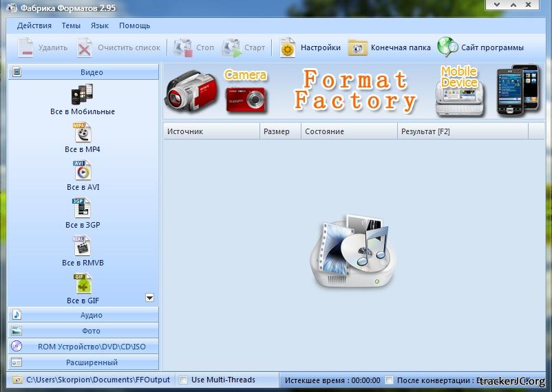 - Поддержка исходных файлов RMVB Возможности Format Factory: