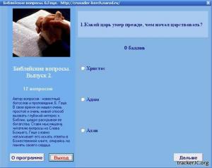 Название: Библейские тесты (с 2 по 15 тест) Автор: Б. Геце Год: n/a Страниц: n/a Формат: exe Качество: отличное Серия или Выпуск: "Исследуем Писания" Язык: русский
