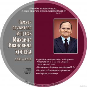 Проповедник: Антонюк Н.С., Хорев И.М., Хорев П.М., Хорев В.М., Ерёменко В., Германюк В.С., Золотухин Н.П., Бибенко М.В., Перебиковский В., Румачик П.В., Ситковский П.Н. и д.р. Тема проповеди: Памяти служителя МСЦ ЕХБ Михаила Ивановича Хорева Год выхода: 2012