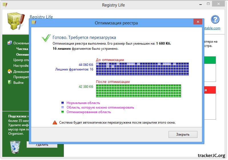 Новый компьютер всегда работает с максимальной производительностью. Однако, каждый замечает, что быстродействие системы постепенно снижается. Утилита Registry Life способна уменьшит влияние данного эффекта, воздействия на две основные причины снижения скорости работы вашего компьютера. Одна из причин - это появление ошибок и неиспользуемых данных (мусора) в реестре. Другая причина - фрагментированность и увеличение размера системного реестра за счет неиспользуемого пространства в файлах, где он записан.