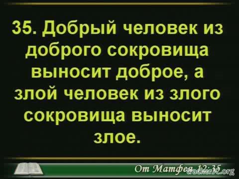 Описание: "Добрый человек из доброго сокровища выносит доброе, а злой человек из злого сокровища выносит злое" (Матф.12:35)