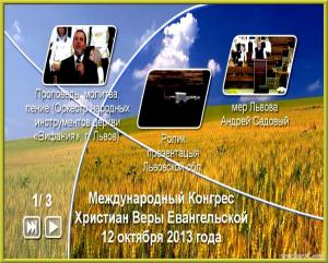 Описание: С 10 по 13 октября 2013 года в городе Львове прошел Международный Конгресс Христиан Веры Евангельской. Участие в нем взяли около 2 тысяч епископов, руководителей национальных объединений и пасторов славянских церквей из разных стран мира. Ключевую роль в подготовке и проведении форума взяли главы объединений из стран бывшего Советского Союза, прибыли делегации из Польши, Германии, США, Канады и прочих государств.