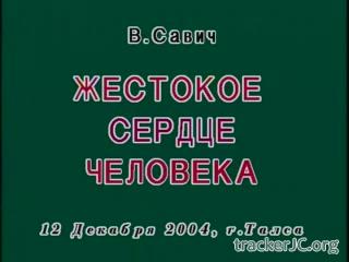 Информация о видео-материале Проповедник: Василий Савич Тема: Жестокое сердце человека Год выхода: декабрь 2004 Жанр: Видеопроповедь